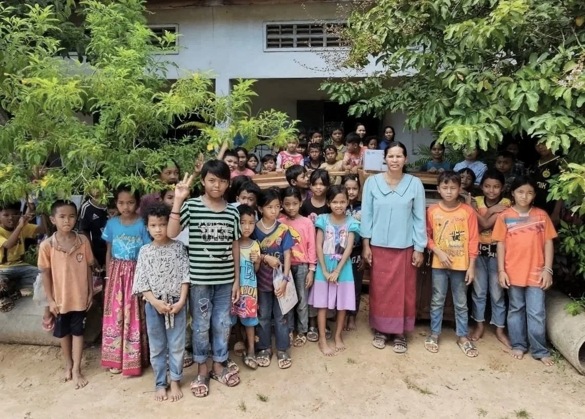 Finally, on May 9, 2025, we received the letter from ASPARA that we had been waiting for; approval for our new schoolhouse was granted! Construction commenced in early June, and the local team did an admirable job of erecting the building with impressive speed & efficiency. The finishing touches were put on the structure just six weeks after construction began, and a ribbon-cutting ceremony was held on July 23, 2025. The celebration included local dignitaries, Buddhist monks to offer blessings, and, of course, dozens of local children who will reap the benefits of this project.